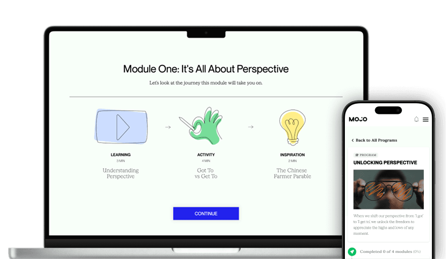 Mojo's digital programs are designed in a simple, profound, and playful way to help you shift your perspective in the areas of life that matter most.