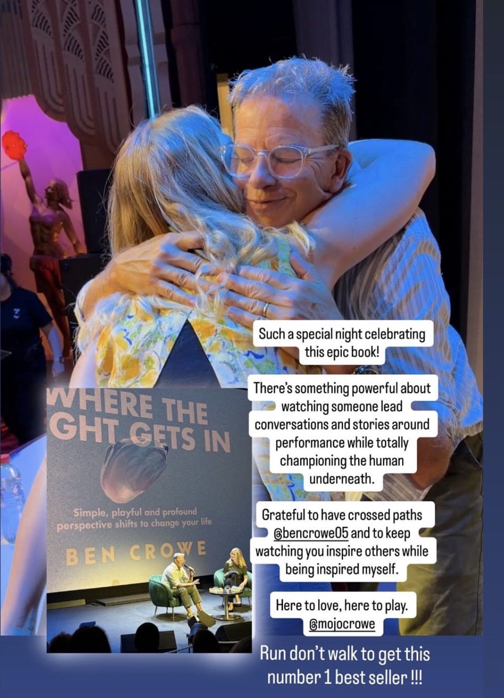"There's something powerful about watching someone lead conversations and stories around performance while totally championing the human underneath… Here's to love, here's to play, Mojo Crowe. Run, don't walk to get this No.1 best seller!"